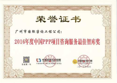 2016年度中國(guó)PPP項(xiàng)目咨詢服務(wù)最佳智庫(kù)獎(jiǎng)