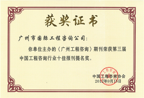 《廣州工程咨詢》獲2012年第三屆中國工程咨詢行...