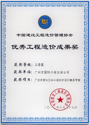 《廣州市西江引水工程初步設(shè)計概算審核》獲2012...