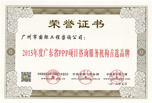 2015年度廣東省PPP項目咨詢服務(wù)機構(gòu)首選品牌