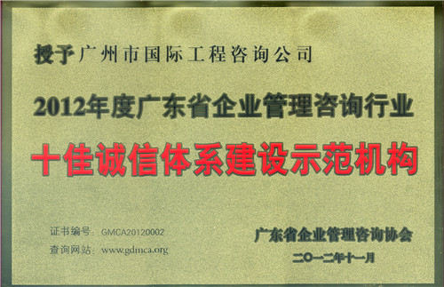 2012年度廣東省企業(yè)管理咨詢行業(yè)十佳誠(chéng)信體系...