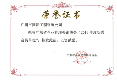 廣東省企業(yè)管理咨詢協(xié)會2016年度優(yōu)秀會員單位
