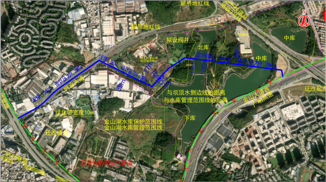 項目概況:為保證地鐵22號線安全運營,需對大鵬液化天然氣市廣路段的在役天然氣管道進行遷改。擬遷改管線起點為金山大道西,經(jīng)金山湖公園、鐘二村至興業(yè)大道,最終接入市廣路現(xiàn)狀管道,全長約2公里。