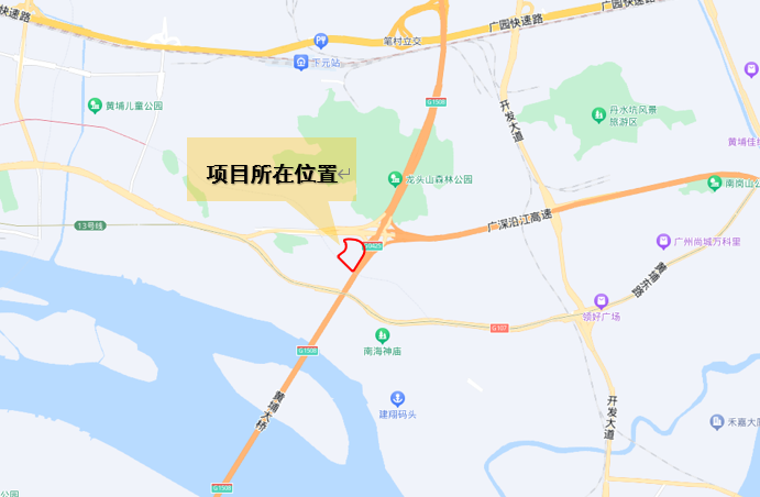 本項目位于廣州市黃埔區(qū)紅山街道廣州冶煉廠地塊,廣深沿江高速與廣澳高速交叉口西南處。
