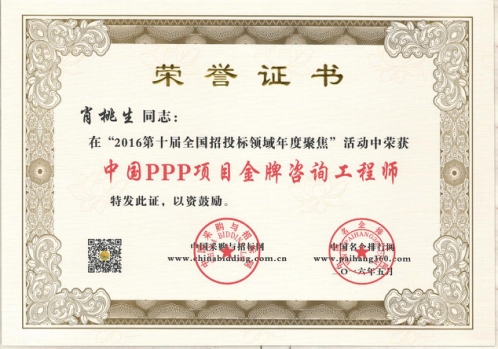 為在PPP咨詢行業(yè)內(nèi)樹立標(biāo)桿企業(yè),國家發(fā)改委中國投資協(xié)會項目投融資專業(yè)委員會、中國采購與招標(biāo)網(wǎng)、中國名企排行網(wǎng)聯(lián)合主辦了“第10、11屆PPP咨詢服務(wù)機構(gòu)評價推薦”活動。秉承“公開、公平、公正、誠實信用”的原則,最終遴選出年度中國PPP咨詢服務(wù)機構(gòu)類大獎。在活動中,廣州市國際工程咨詢公司榮獲“2015、2016年度中國PPP項目咨詢服務(wù)機構(gòu)百強(前十強)”,”2016年度中國PPP項目咨詢服務(wù)機構(gòu)十大頂級品牌”、”2016年度中國PPP項目咨詢服務(wù)最佳智庫獎”、”2015年度廣東省PPP項目咨詢服務(wù)機構(gòu)首選品牌”、”2015年度市政基礎(chǔ)設(shè)施PPP項目咨詢服務(wù)機構(gòu)首選品牌”等集體榮譽類大獎。此外,公司PPP項目咨詢中心主任肖桃生、副主任盧世君、陳偉雄、孫亮分別榮獲2015、2016年度中國PPP項目金牌咨詢工程師稱號。