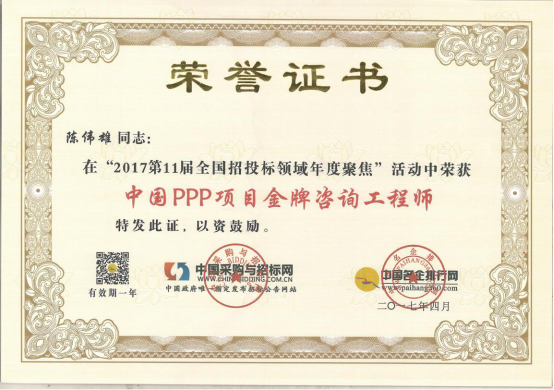 廣州市國際工程咨詢公司已連續(xù)兩年,蟬聯(lián)年度中國PPP項目咨詢服務(wù)機構(gòu)十大頂級品牌等獎項。