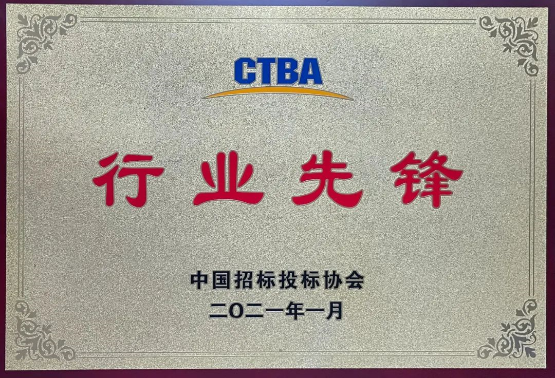 我司榮獲中國(guó)招標(biāo)投標(biāo)協(xié)會(huì)授予的 “行業(yè)先鋒”稱號(hào)