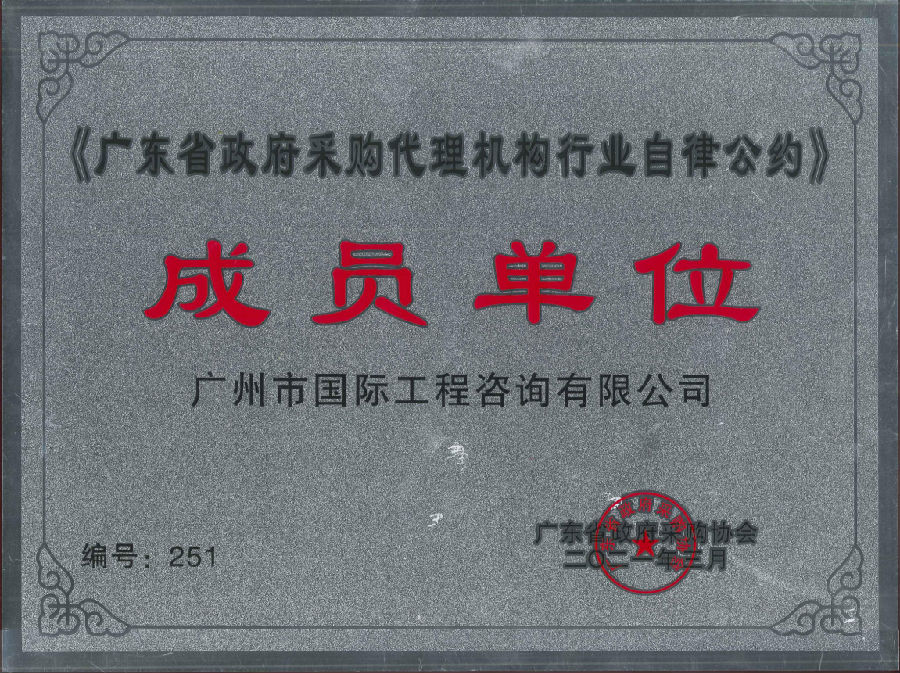 我司被授予廣東省政府采購協(xié)會(huì)代理機(jī)構(gòu)行業(yè)自律公約成員單位