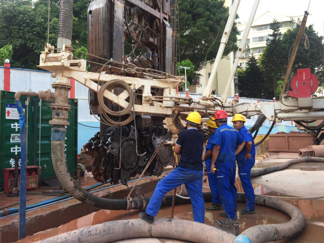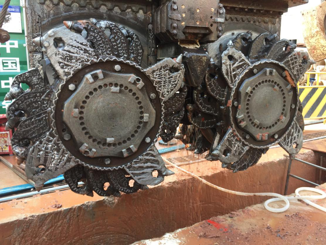 在城市軌道交通項(xiàng)目施工過程中,地下連續(xù)墻工藝被廣泛應(yīng)用于基坑支護(hù)體系,傳統(tǒng)上使用的沖樁機(jī)輔助成槽機(jī)施工,地下連續(xù)墻震動(dòng)大,對(duì)周邊居民及建筑物影響大,在中風(fēng)化、微風(fēng)化等巖石堅(jiān)硬、巖層厚的地質(zhì)條件下,施工過程中會(huì)出現(xiàn)不可避免的偏孔、沖孔緩慢等問題,導(dǎo)致施工功效低、延誤工期且有連續(xù)墻鼓包、鋼筋籠卡籠等質(zhì)量問題。為此,在廣州市新一輪十三五軌道交通多個(gè)項(xiàng)目的施工中,針對(duì)巖石堅(jiān)硬、巖層厚等地質(zhì)條件,在地下連續(xù)墻的施工中采用了新的工藝--雙輪銑成槽機(jī)施工地下連續(xù)墻,它具有鉆進(jìn)能力強(qiáng)、垂直度控制好、成槽質(zhì)量好、工期短、工效高、對(duì)環(huán)境影響小、施工噪音小、震動(dòng)小,對(duì)周邊居民、建筑影響小等優(yōu)點(diǎn),目前正廣泛應(yīng)用于堅(jiān)硬巖石、巖層厚的地鐵地下連續(xù)墻施工領(lǐng)域,但由于沒有合適的定額套用,一直以來各方爭議較大。