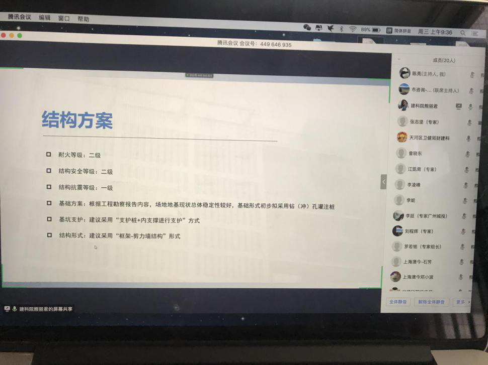 受廣州市天河區(qū)發(fā)展和改革局委托,廣州市國際工程咨詢公司于2020年2月19日組織召開了《廣州市天河區(qū)第二人民醫(yī)院建設(shè)工程可行性研究報(bào)告》專家評(píng)估會(huì)。為深入貫徹省、市關(guān)于新型冠狀病毒疫情防控工作部署,在加強(qiáng)疫情防控的同時(shí),做好“六穩(wěn)”工作,評(píng)估會(huì)采用了遠(yuǎn)程網(wǎng)絡(luò)視頻會(huì)議形式進(jìn)行。會(huì)議邀請(qǐng)了建筑工程、巖土工程、給排水工程、建筑電氣、暖通空調(diào)、醫(yī)院設(shè)備和工程造價(jià)等專業(yè)領(lǐng)域的七位專家,天河區(qū)衛(wèi)生健康局、天河區(qū)建設(shè)工程項(xiàng)目代建局、中山大學(xué)附屬第六醫(yī)院、廣東省建筑科學(xué)研究院集團(tuán)股份有限公司、廣州市城市規(guī)劃勘測設(shè)計(jì)研究院和香港澳華醫(yī)療產(chǎn)業(yè)集團(tuán)等有關(guān)單位的代表參加了會(huì)議,合計(jì)參會(huì)人數(shù)有20人。
