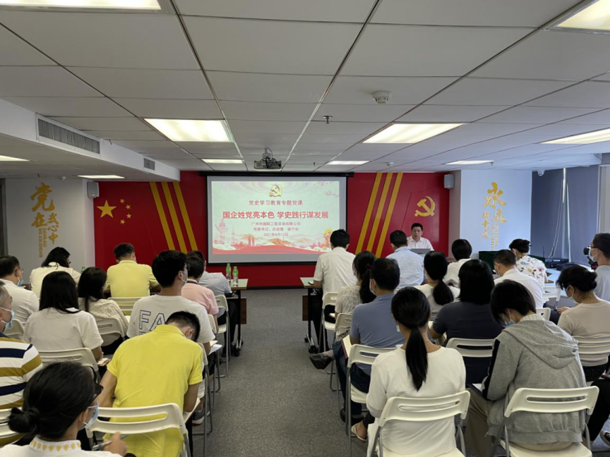 根據市委黨史學習教育領導小組及廣州國發(fā)黨委部署要求,廣州市國際工程咨詢有限公司黨委于8月12日組織召開黨委理論學習中心組學習會暨《國企姓黨亮本色 學史踐行謀發(fā)展》黨史專題黨課,市委黨史學習教育第9巡回指導組組員陳佳強同志列席指導,公司黨員及非黨員中層干部共38人參加了會議。